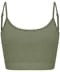 Adjustable spaghetti straps. Bound neck and armholes. Double-layer front for secret support. Rib-length with concealed elastic band. Brand-free, for easy rebranding. Contains recycled cotton and recycled polyester.